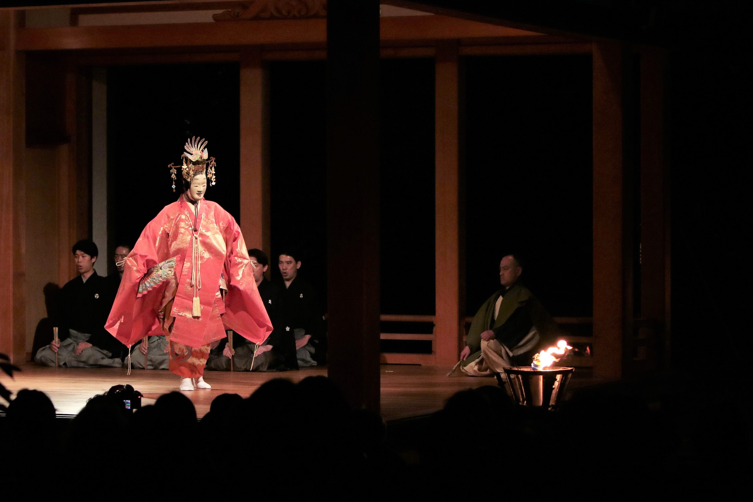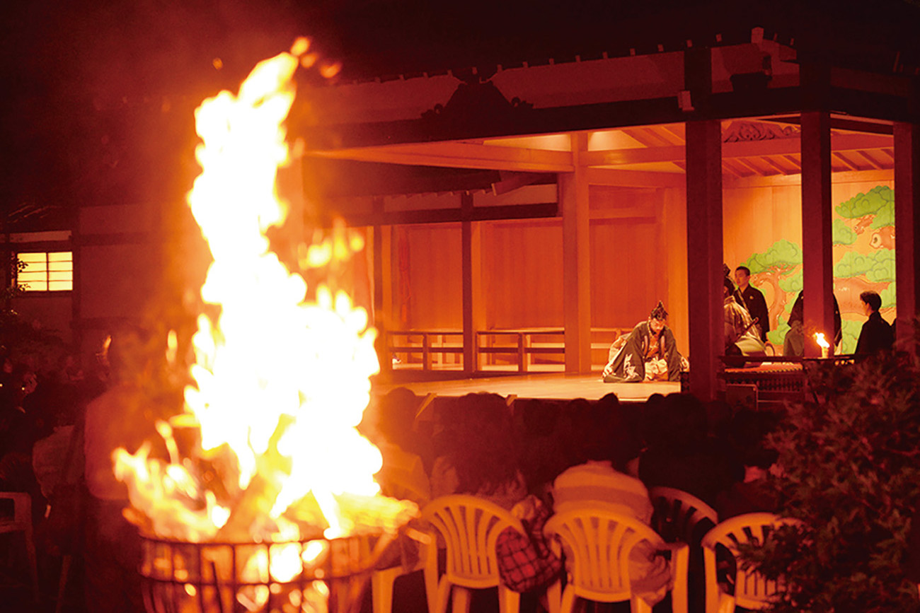 阿佐谷薪能では、重要無形文化財保持者であるシテ方観世流・小早川修氏を中心に、能楽の各流派を代表する能楽師を迎え、阿佐ヶ谷神明宮の野外能楽殿にて上演を行っています。薪能は、野外能楽殿という特定の舞台条件を必要とする公演形式であり、恒常的に薪能を実施できる野外能楽殿は全国的にも限られています。